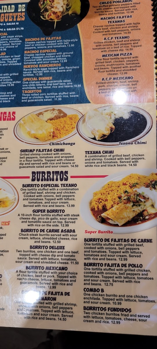 For a satisfying main meal, the restaurant boasts specialties like Don Julio Especial, Mar Y Tierra, and El Arca De Noe among their dinner specials. The Fajita Taco Salad and Nachos De Fajitas offer great Tex-Mex options. Fans of crispy delights will enjoy their assortment of Chimichangas, including the Fajita Chimichanga and the Texana Chimi. For those craving hearty burritos, options like the Tres Amigos Burrito and Super Burrito are delicious and fulfilling.